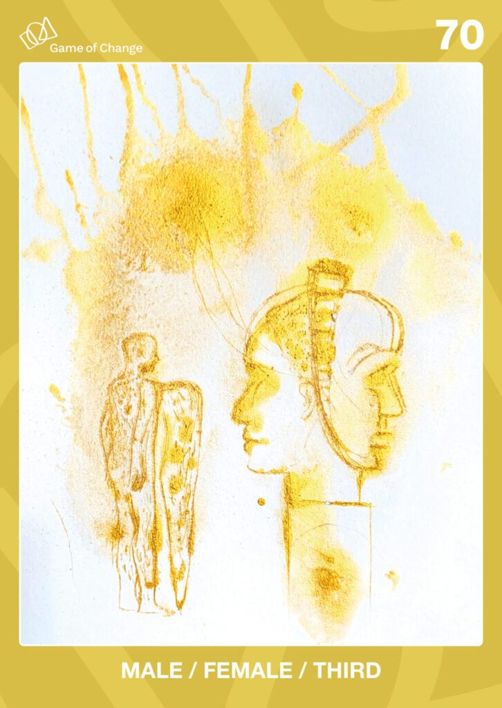 If you drew this card, it is about gender roles. Choose a gender other than your own for the duration of the game. Include the third gender as well. If you want to stick with your own gender, treat it like a role, not like the one you are used to.