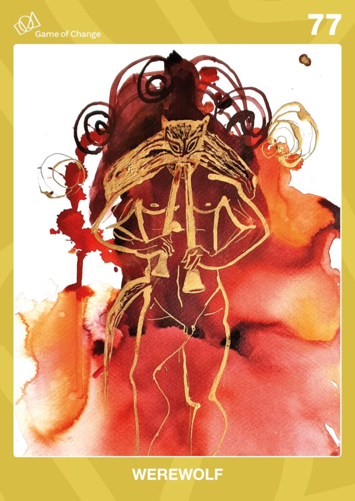 Humans have powers they no longer know and are therefore portrayed as sinister. A werewolf embodies pure wildness, as if one did not have to worry about the laws of civilization, as if one could live outdoors, barefoot, direct and lustful. The werewolf symbolizes the clash between instinct and civilization. The old moon awakens instincts such as uninhibited liveliness and passion beyond moral or ethical boundaries.